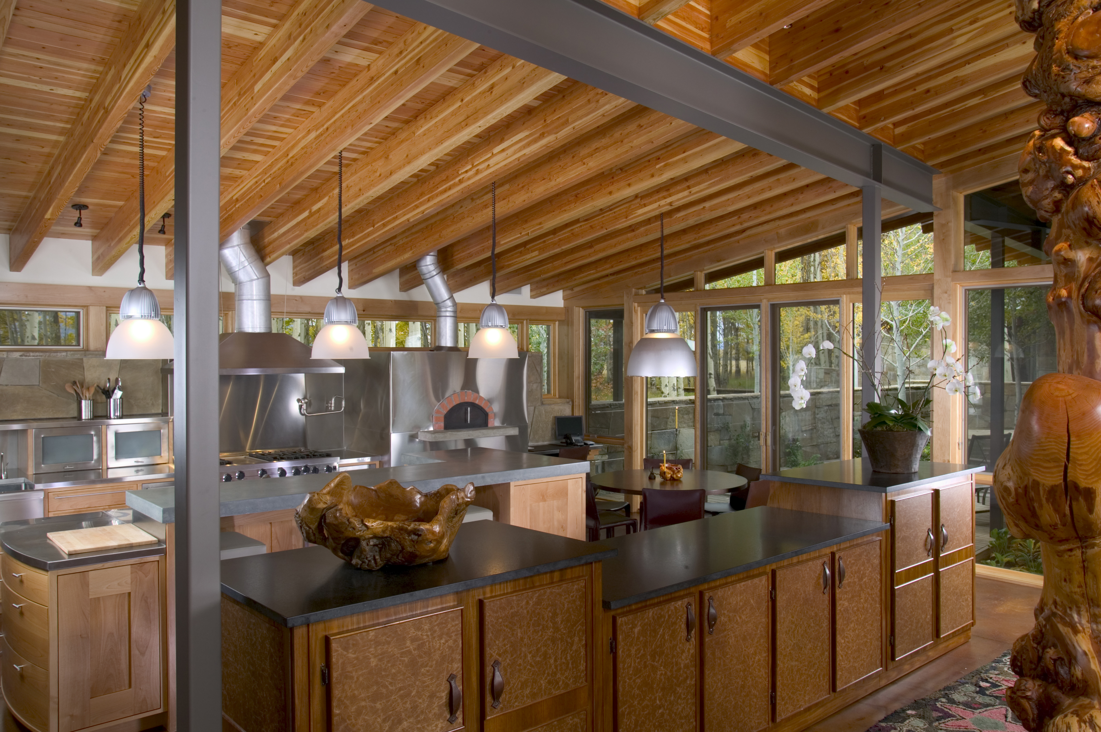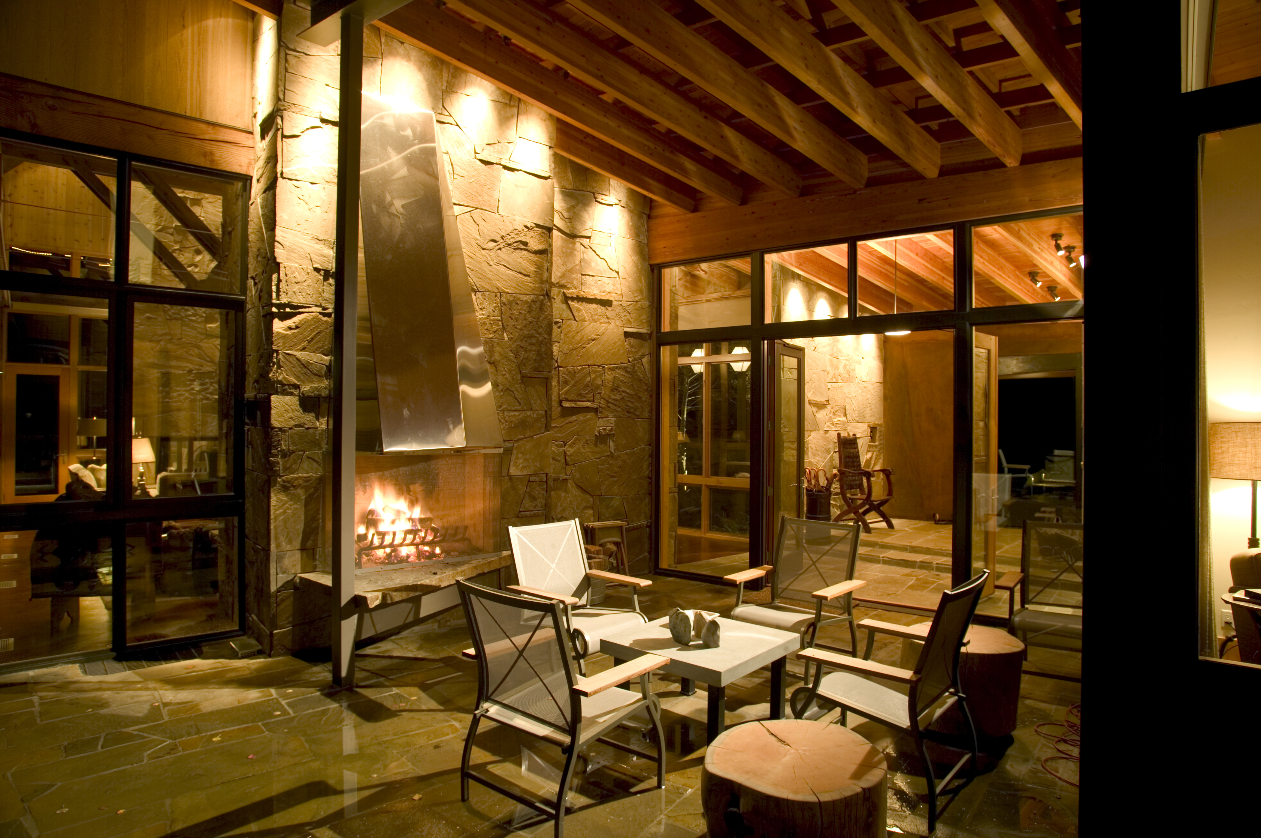 Creating custom, one-of-a-kind lighting fixtures, we worked closely with the client, interior designer, and architect to design pieces that coordinate with the design approach and provide excellent lighting. Creating a fixture that is “born out of the architecture”, as opposed to simply hanging jewelry over the table. Repeating a lighting approach from the interior to the exterior invites guests to enjoy the outdoor patio, providing a seamless connection between the two spaces.